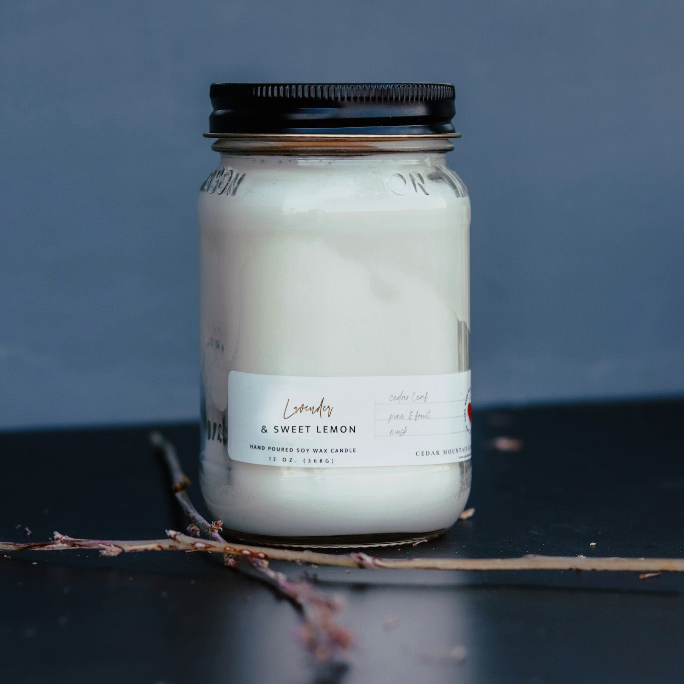 13 oz Mason Jar Soy Candle - Lavender & Sweet Lemon
