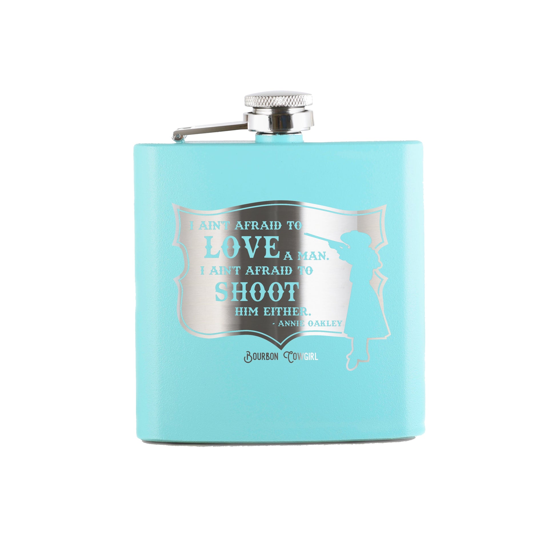 Annie Oakley Quote I Ain't Afraid to Love a Man Flask Gift - Bourbon Cowgirl
