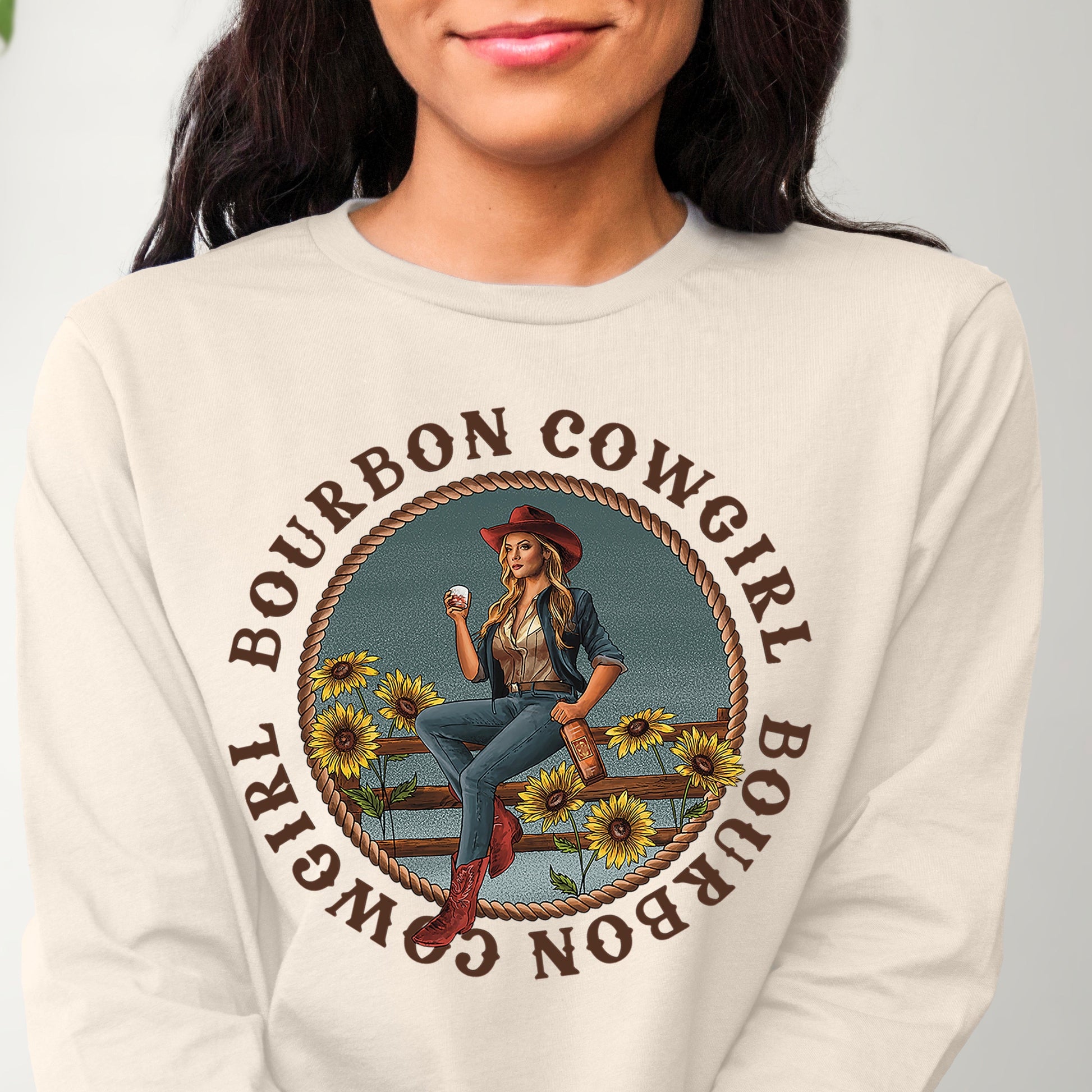 Bourbon Cowgirl Long Sleeve Natural T-Shirt Bourbon Cowgirl