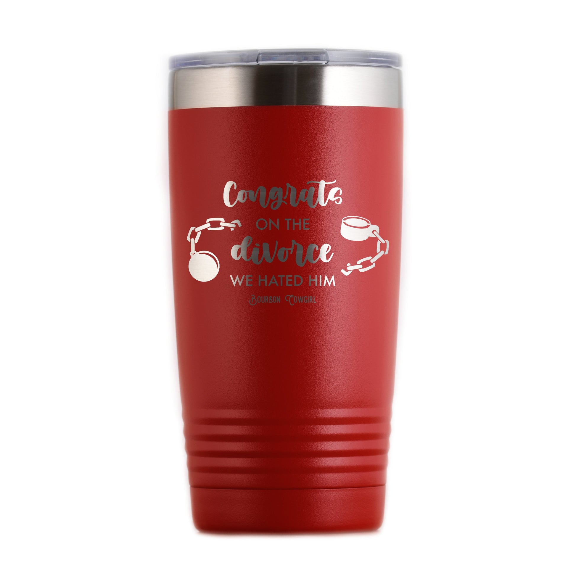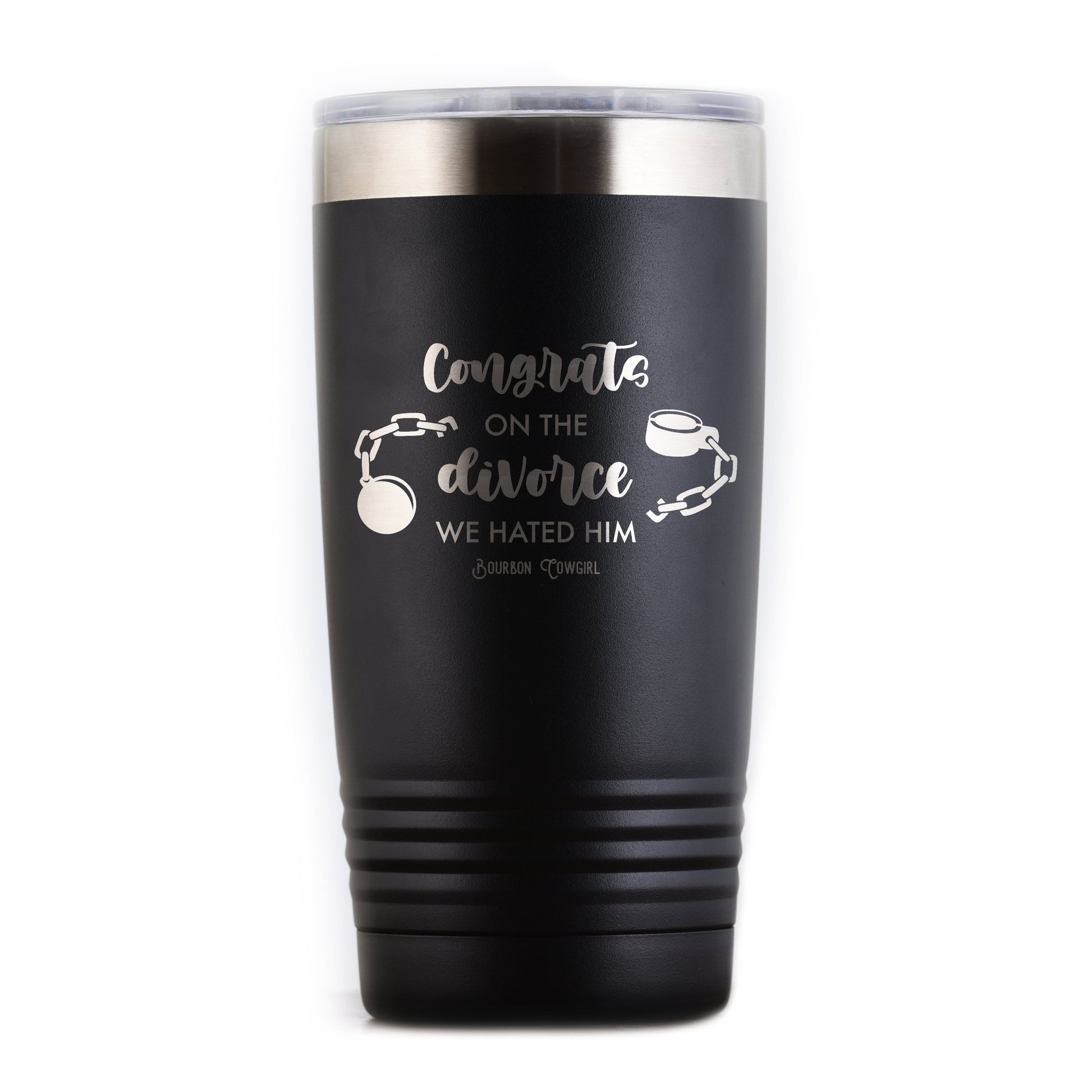 Congrats on the Divorce We Hated Him Travel Tumbler gift for her is a funny gift for your friend who just lost the ball and chain! Have a girlfriend who is going through a rough divorce and needs a pick me up? This coffee and drink tumbler will make her giggle despite the rough marriage!
