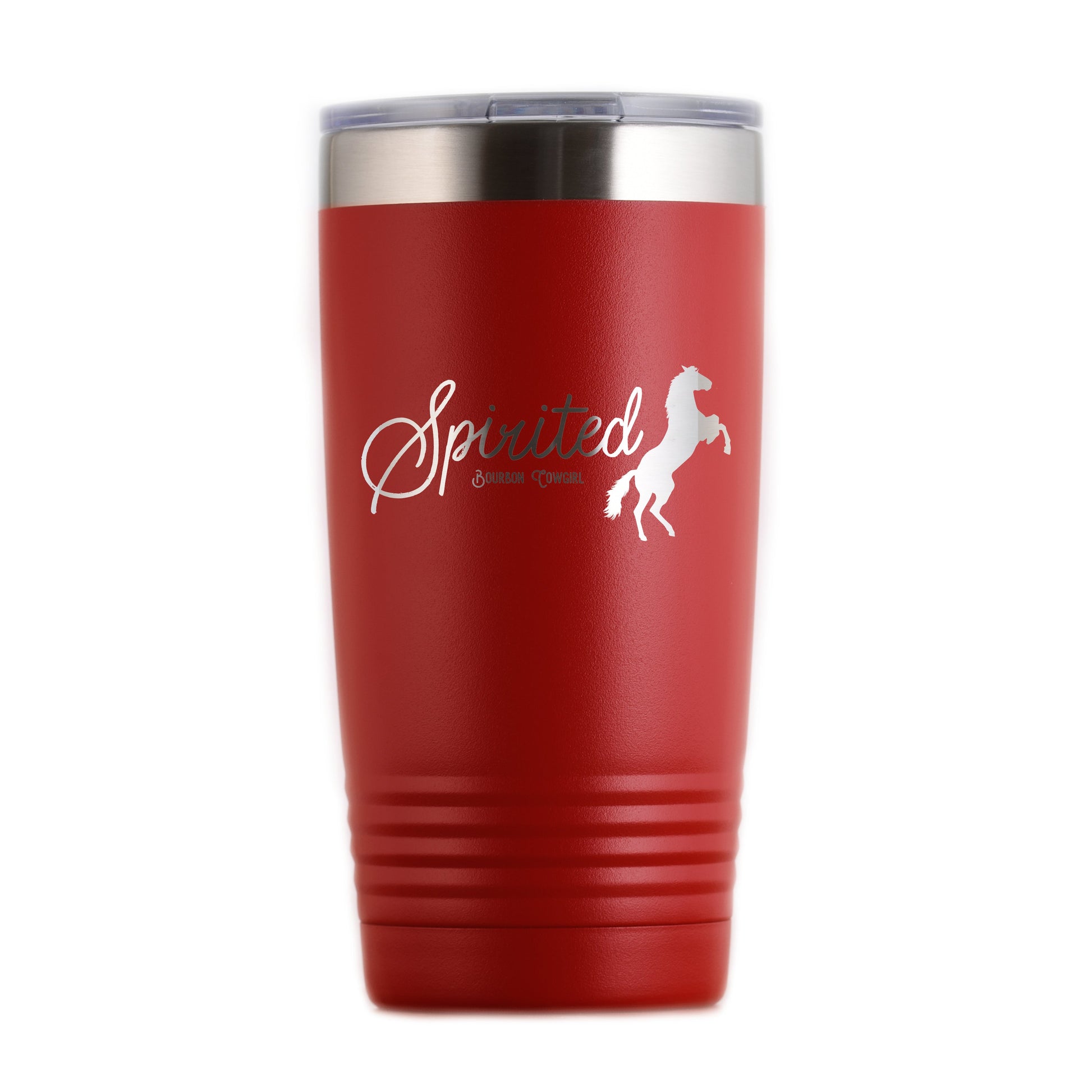 Our Spirited Travel Tumbler features a rearing horse showing everyone just how wildly wonderful you are. Join our tribe of Spirited Women. A Spirited Woman is a mystical, magical creature. She's strong, independent, and beautiful on the inside - where it counts. Her heart might bear some scars but she's all the more loving and spirited by the experiences she's endured. She's not afraid to take chances. She marches to the beat of her own drum and is a bit of a wild child with a gypsy soul. Get a different design or color for each friend and give her a gift she can use daily and cherish always.