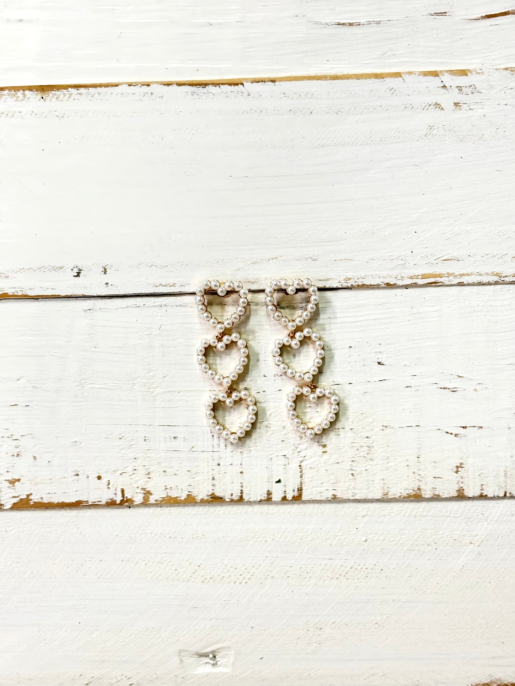 Make a statement with our Triple Pearl Heart Dangle Earrings. These playful and chic earrings feature three delicate pearls in a heart-shaped dangle. Perfect for adding a touch of whimsy to any outfit, these earrings are a must-have for any trendy fashionista!