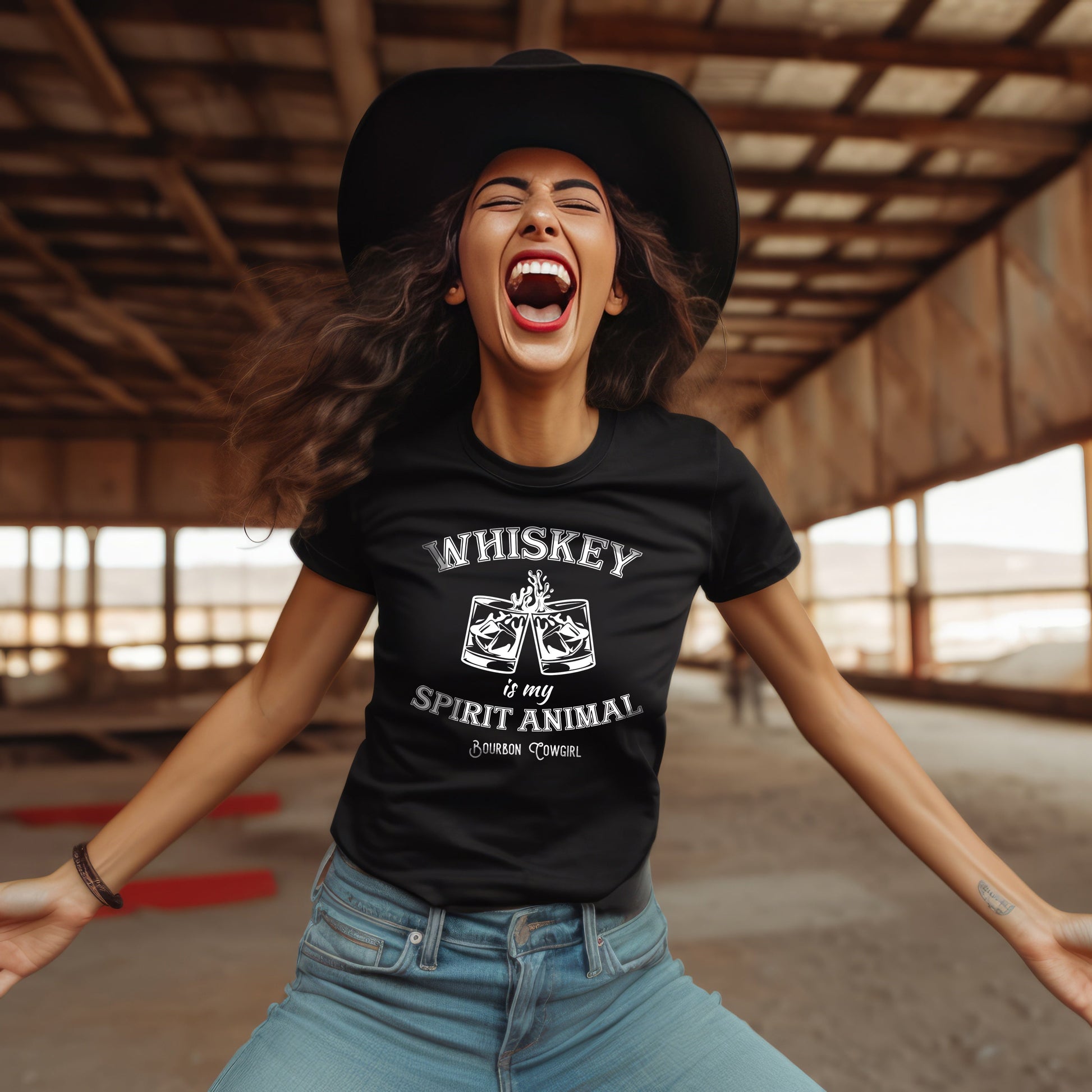 Whiskey Is My Spirit Animal Graphic Tee - Bourbon Cowgirl